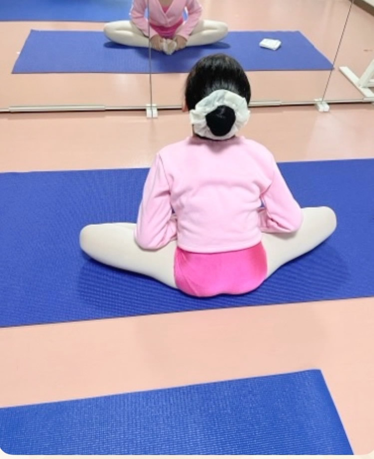 早めにお稽古場入りし、バレエレッスン前のストレッチ習慣😊とても大切ですね!